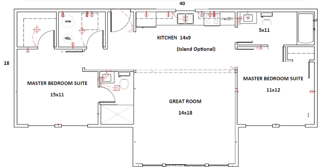 Boulder Creek I - 820 sq ft ~ 2 bedroom master suites ~